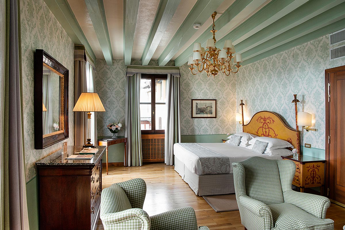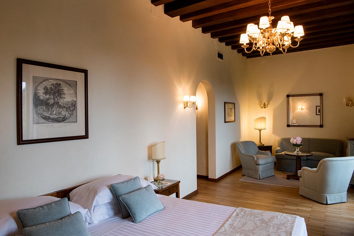 Il progetto riguarda le suite, per le quali sono stati realizzati lampadari con paralumi in seta e lumi custom-made, studiati appositamente per dialogare con gli arredi e le proporzioni degli spazi.