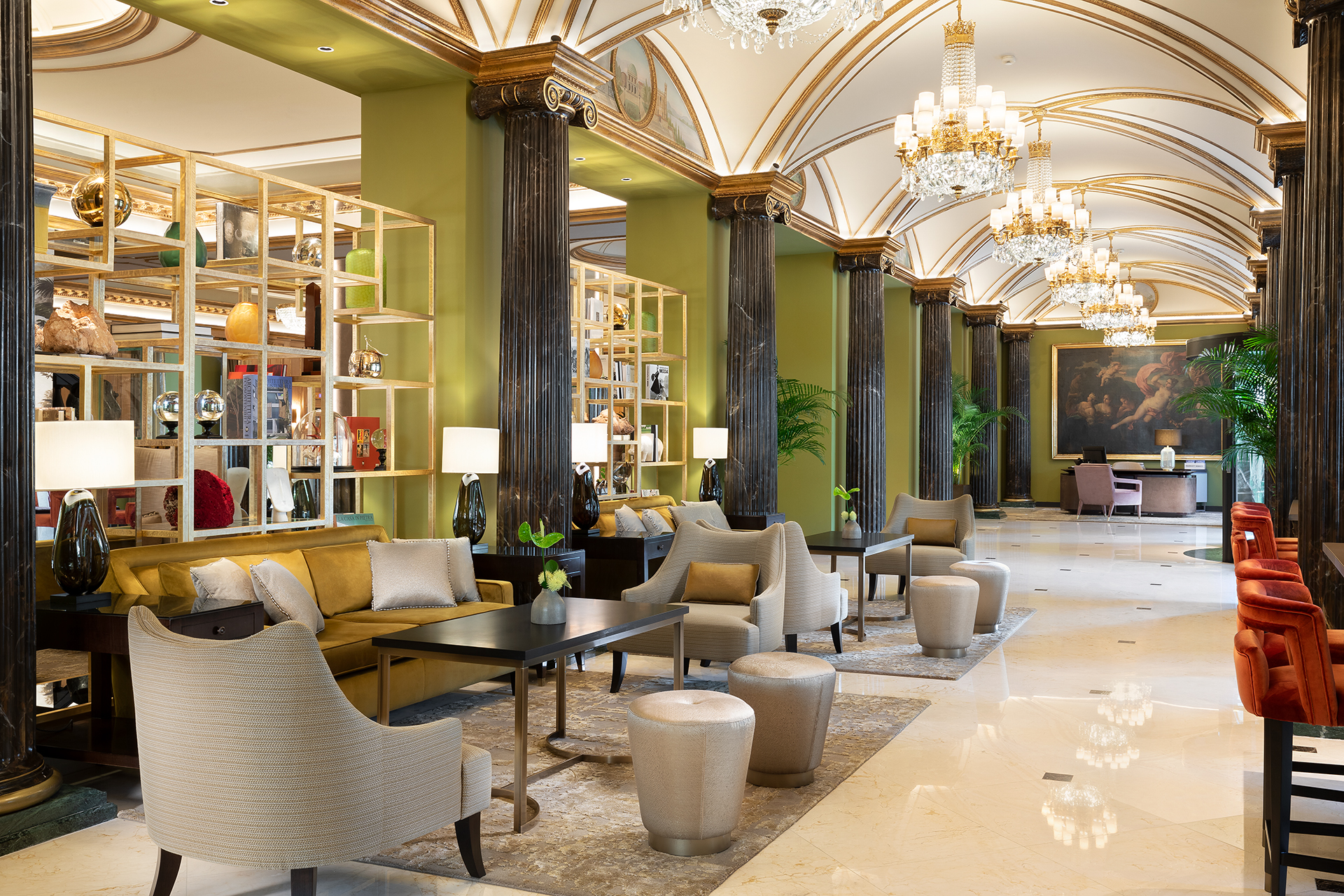 Per il Westin Palace Milano, uno degli hotel di lusso più iconici della città, G. Moscatelli ha realizzato un prestigioso progetto di illuminazione in dialogo con l’architettura storica e gli interni senza tempo dell’edificio. All’ingresso, una serie di lampadari in cristallo in stile Impero scende dalle volte decorate, creando un’accoglienza scenografica.